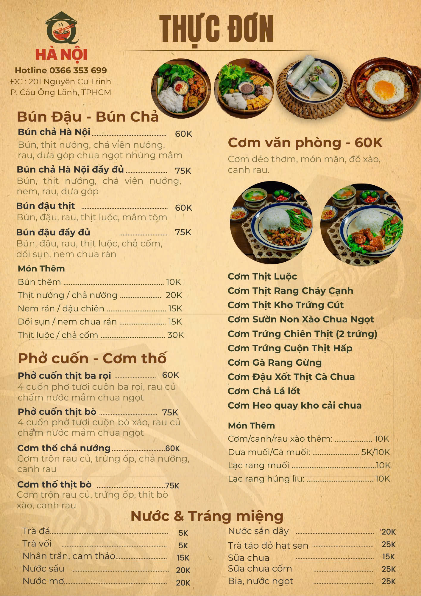 Cơm / canh / rau xào thêm: 10K
